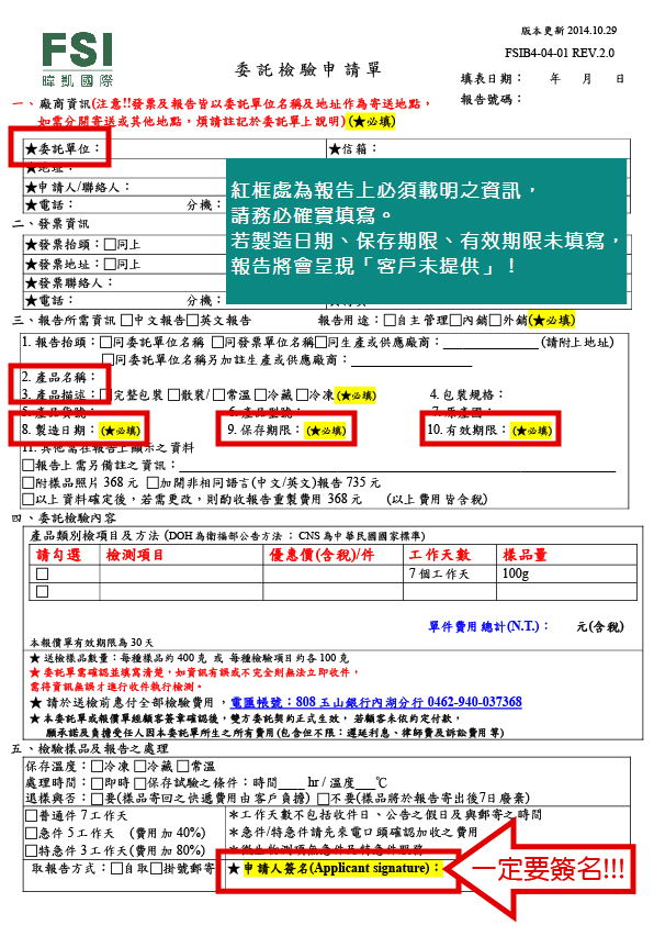 委託檢驗單上那些資訊是一定會呈現於報告上的?