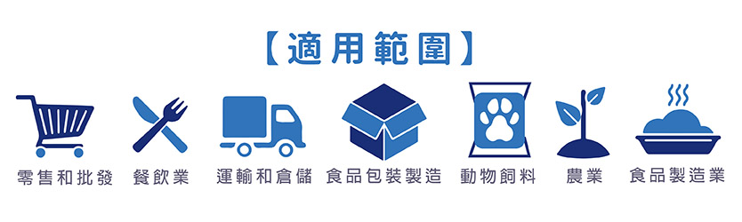 FSSC 22000 適用於食品供應鏈中的所有組織,舉例來說,從食品供應鏈源頭的飼料廠、屠宰場、食品生產加工廠、儲運商到後端的零售商和餐飲業者等;以及食品業的相關業者如包裝材料、清潔消毒、設備、添加劑等都適用FSSC 22000 系統驗證。