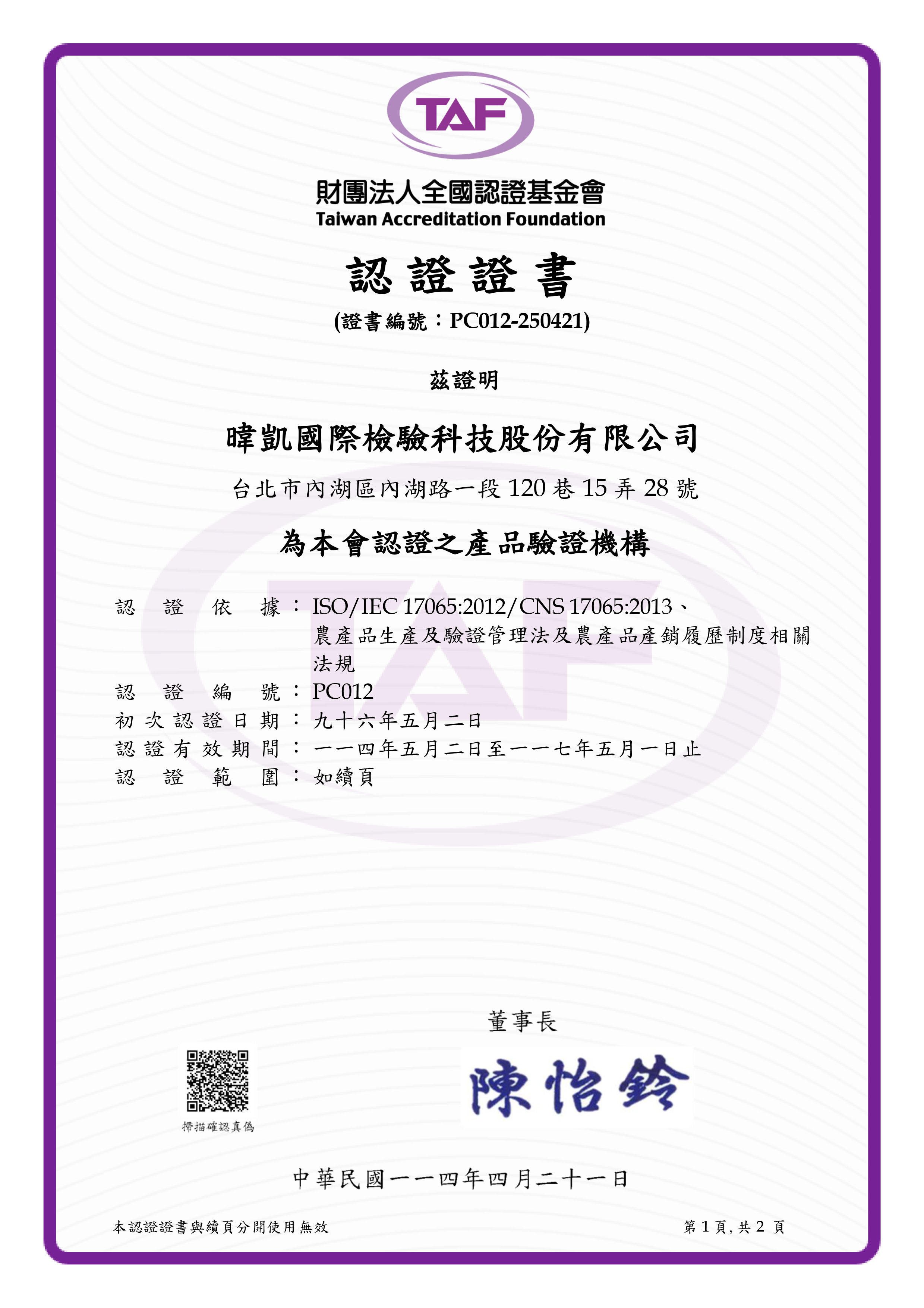 本公司獲財團法人全國認證基金會頒發認證證書,點圖可閱覽詳細證書內容 |