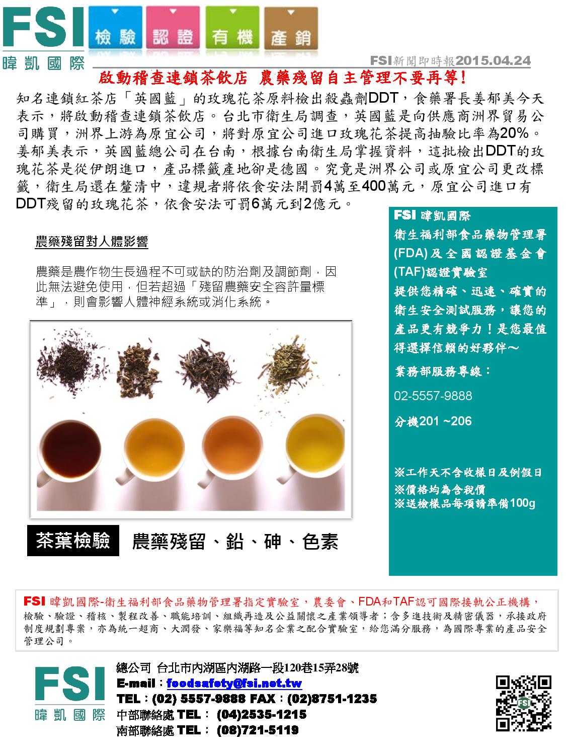 暐凱快訊:啟動稽查連鎖茶飲店 農藥殘留自主管理不要再等!