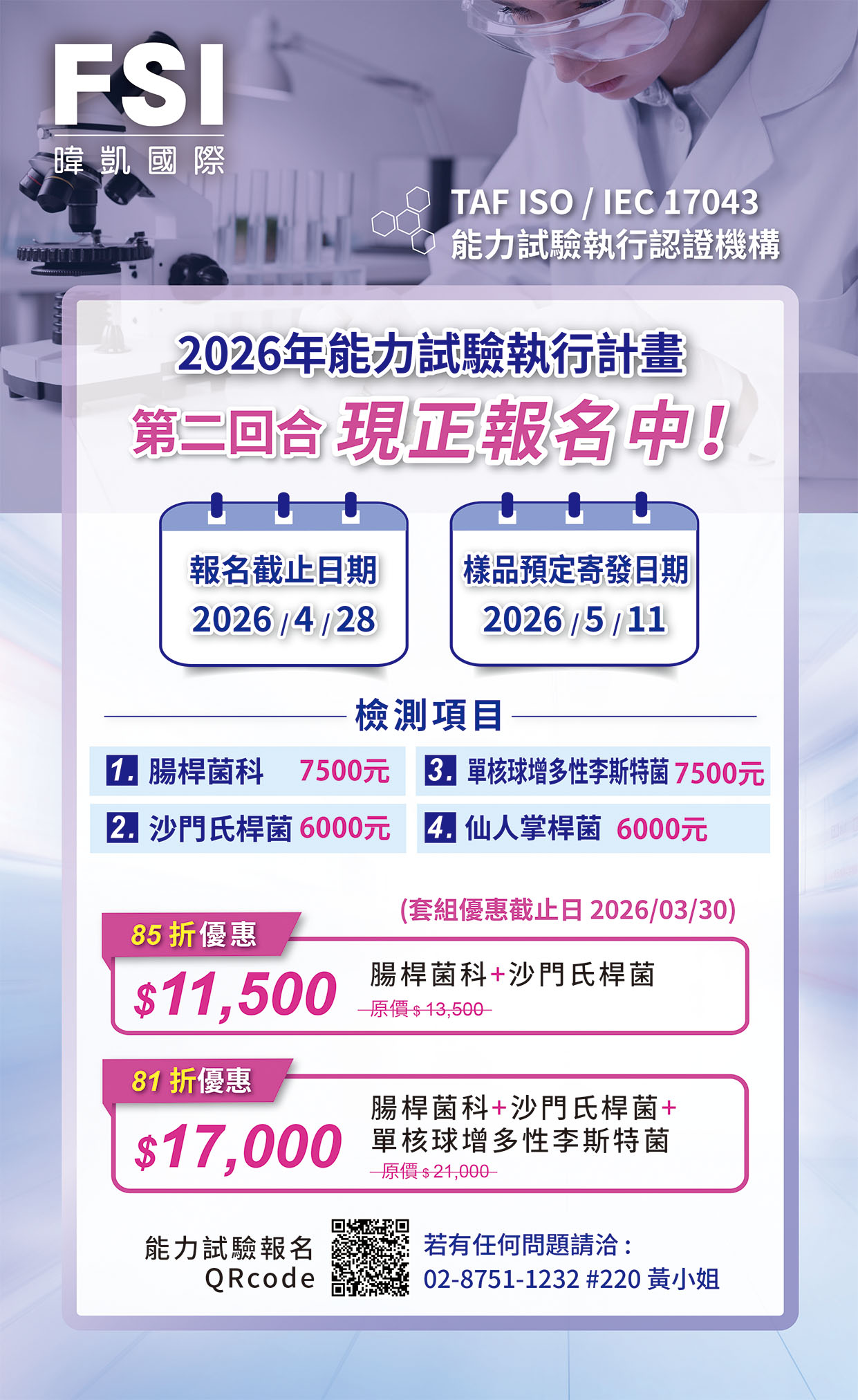 | 2026-03-10 | 2026年 能力試驗第二回合:腸桿菌科+單核球增多性李斯特菌+沙門氏桿菌+仙人掌桿菌 熱烈報名中! |