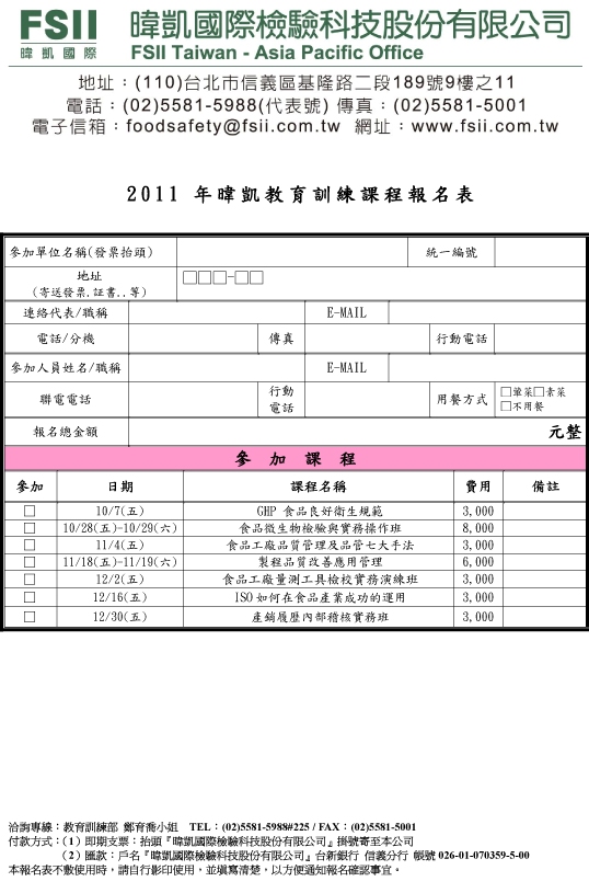 2011年暐凱教育訓練課程報名表