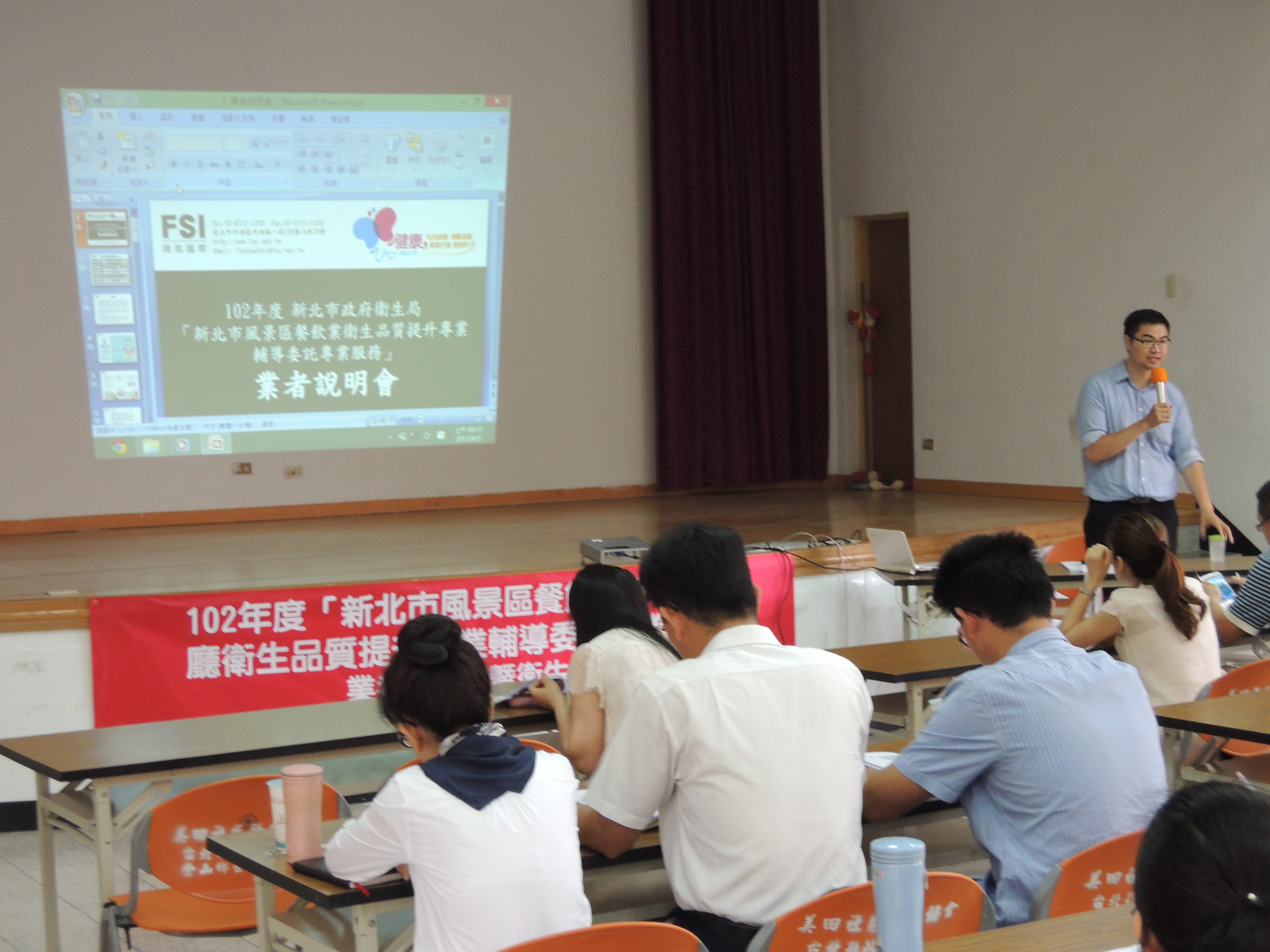 | 2013-06-17 | 102年度「新北市風景區餐飲業及筵席餐廳衛生品質提升專業輔導委託專業服務」說明會暨餐飲衛生講習 |