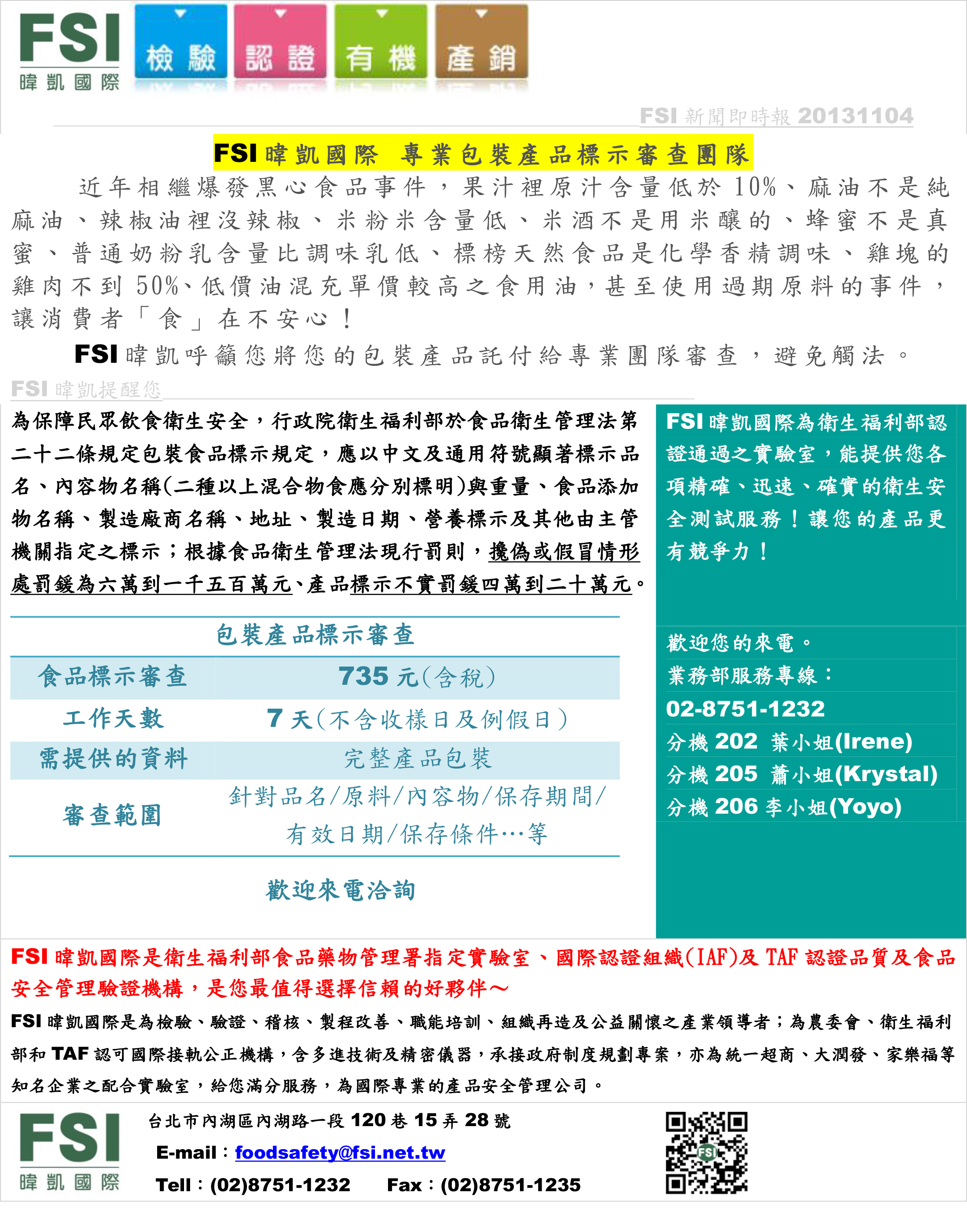 FSI暐凱呼籲您將您的包裝產品託付給專業團隊審查檢驗,避免觸法