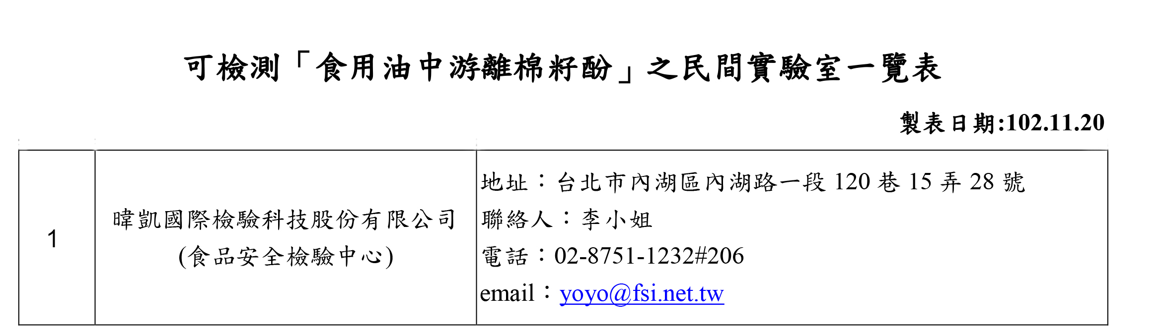 恭賀!!!暐凱公司通過食管署認證可檢測棉酚及銅葉綠素之民間實驗室