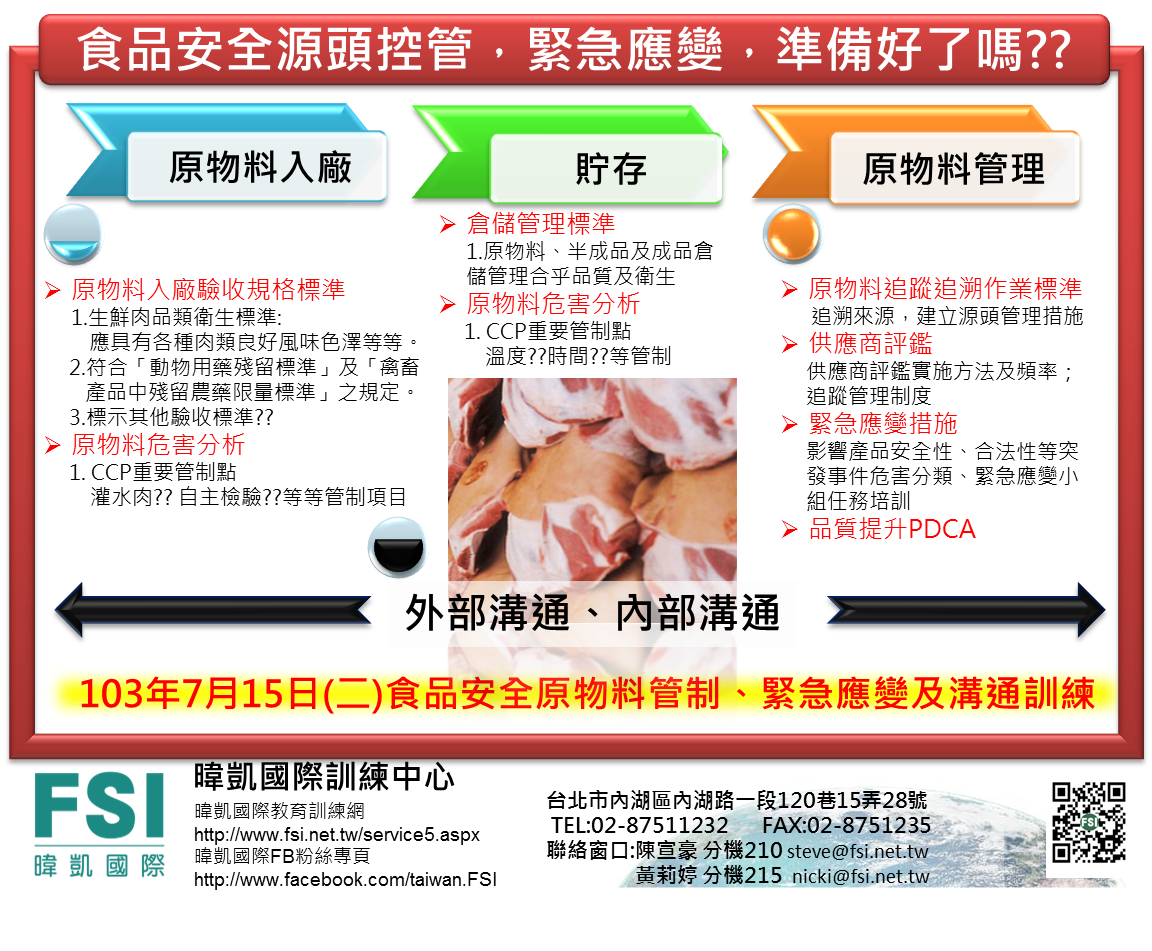 103年7月15日(二)食品安全原物料管制緊急應變及溝通訓練課程簡章