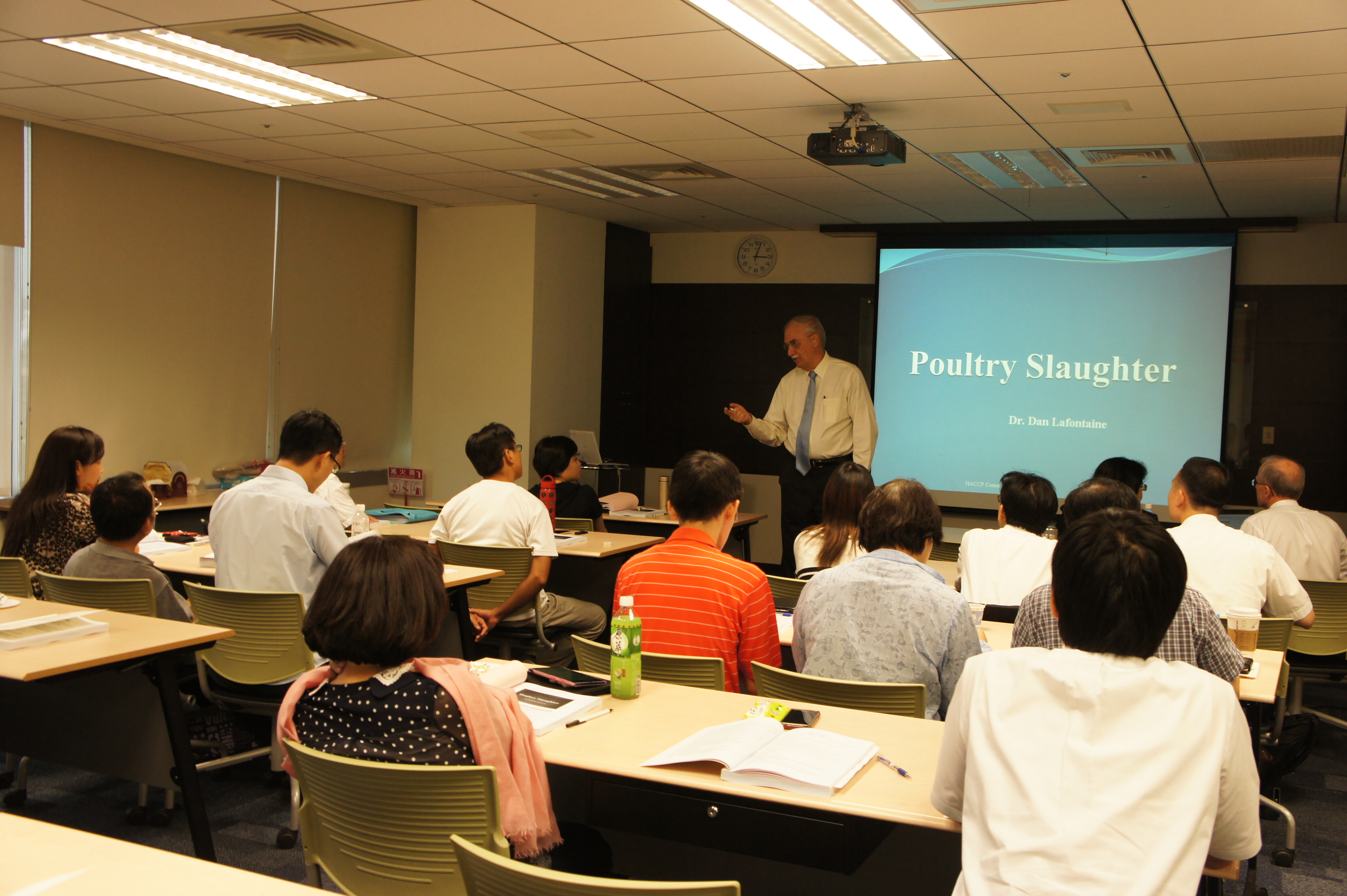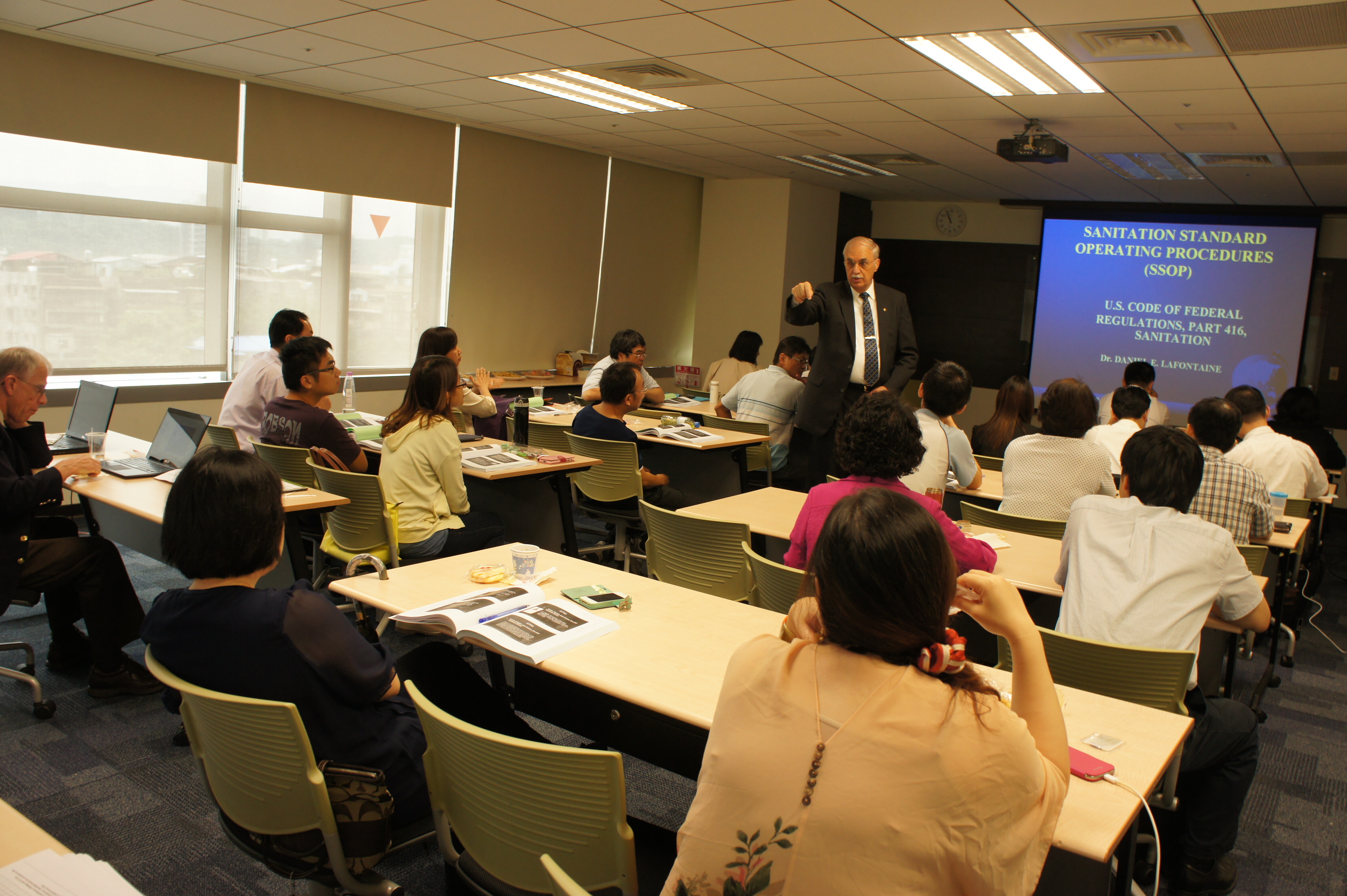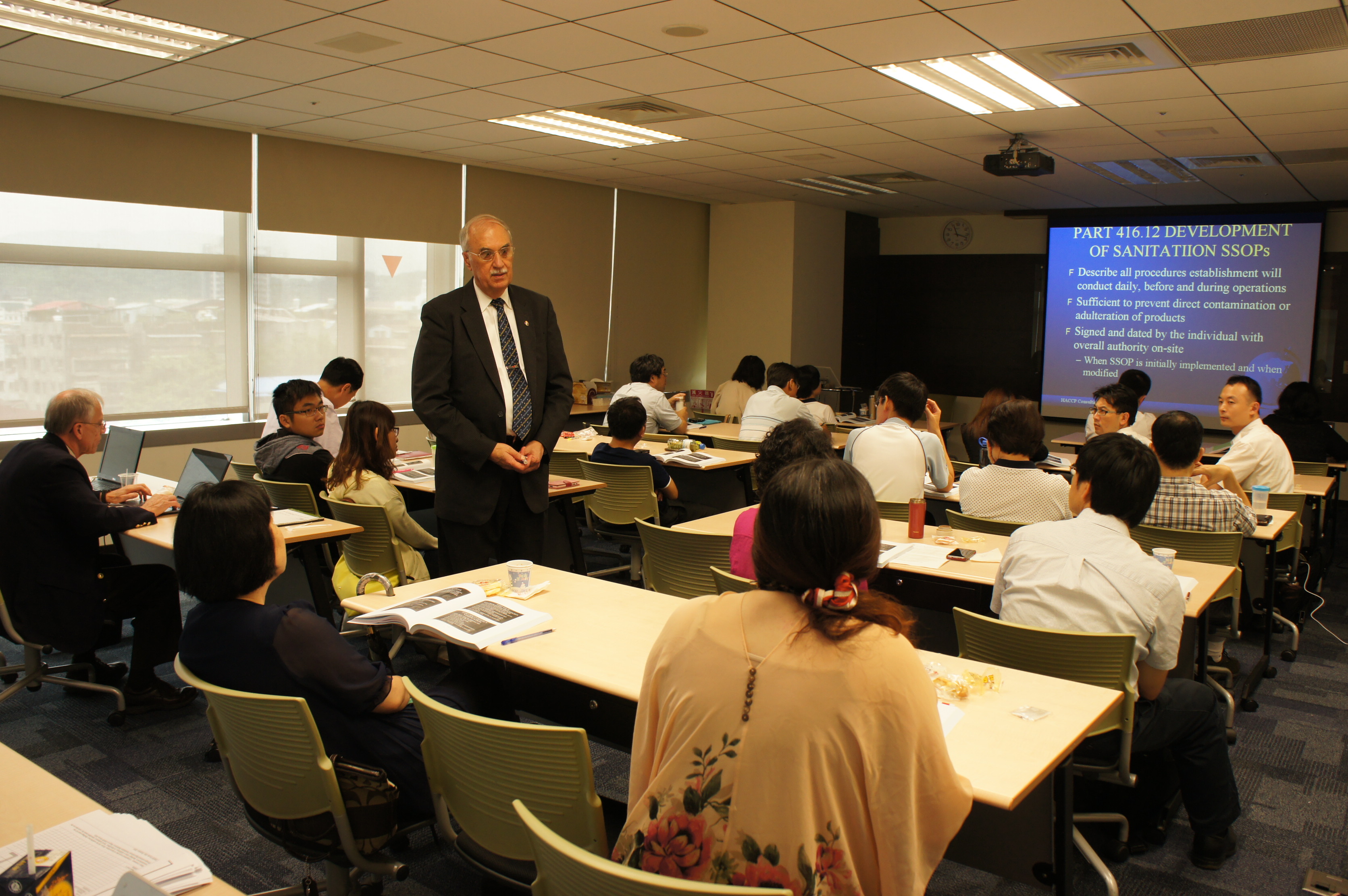 9月23日至9月25日舉辦「美國食品安全及檢查服務局查核系統訓練課程」,講授美國境內及國際等效及邊境查驗管理制度,邀請前美國食品安全局官員STEVE MCDERMOTT博士,HACCP專家DANIEL E. LAFONTAINE博士,以及KENNETH McMILLIN博士擔任講師。講師以與學員互動的方式進行授課,帶給學員不同的美式風格上課經驗。 |